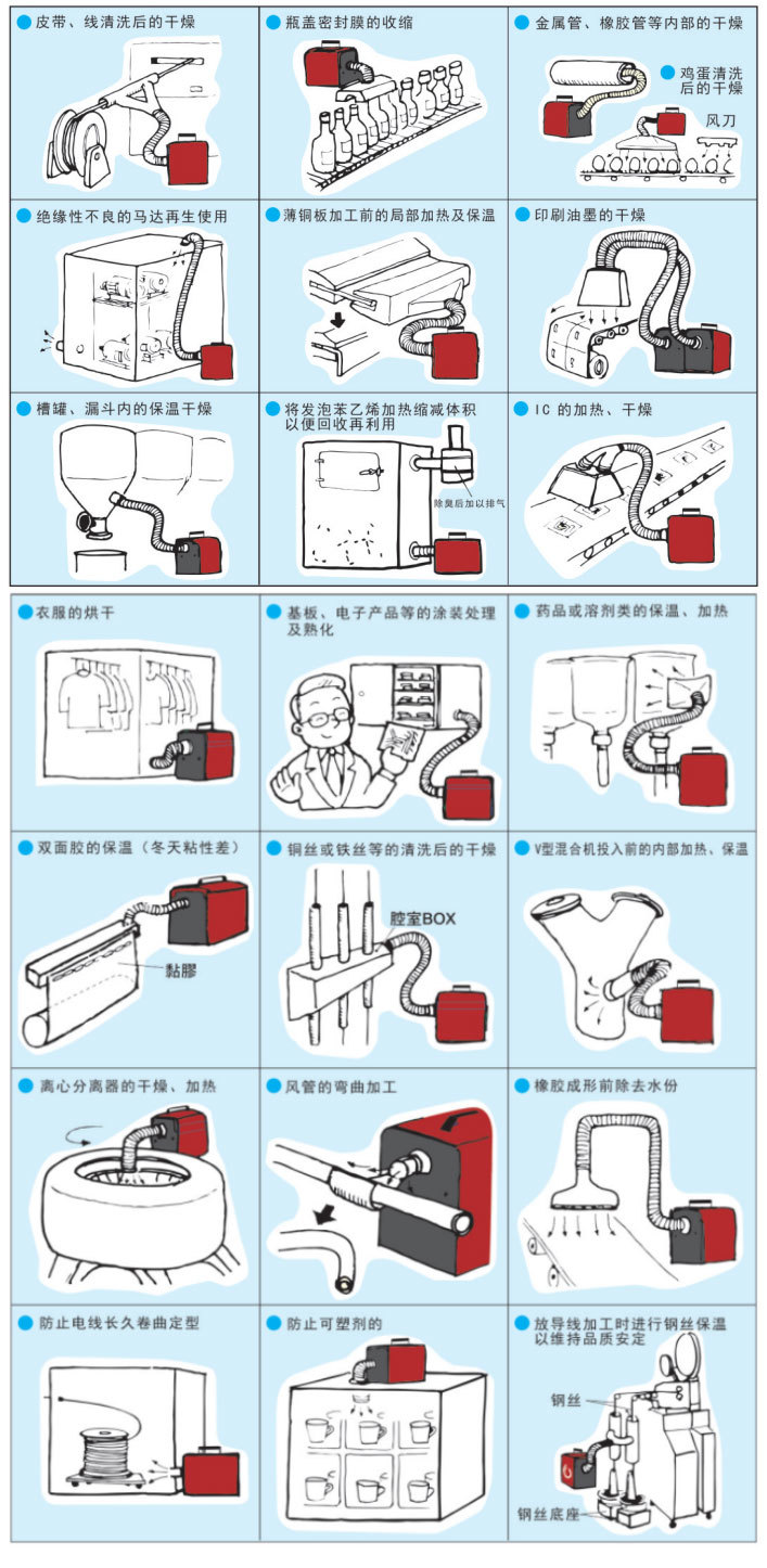五金零件/电子元器件清洗后快速干燥;干燥炉内的升温/加热/干燥/烧制:食品机材的加热/杀菌/解冻:医药瓶装,袋装输液瓶,化验瓶清洗后除水杀菌;太阳能板/玻璃/钢板平板类产品除油清洗后除水干燥;是提高生产效率,提升生产工艺,优化产品质量的烘干设备。