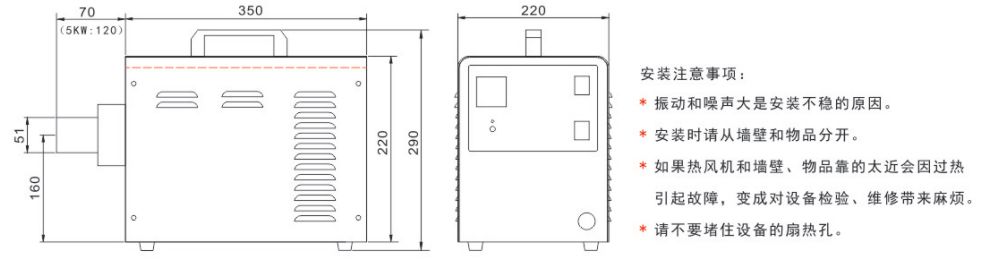 3~5kw便携式热风机具有体积小,重量轻,移动方便等特点。是小型物件干燥处理和空间升温加热的热风源配置。